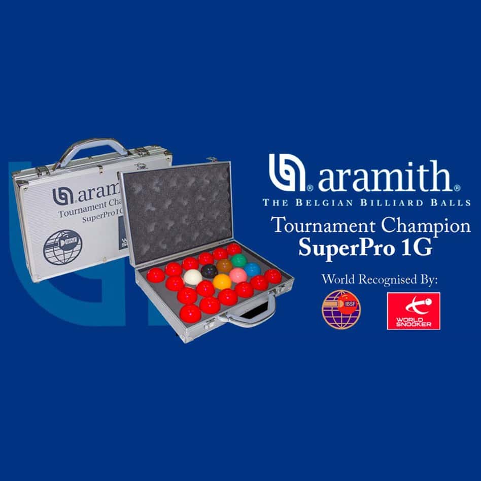Now available to the public as the “Aramith Tournament Champion Super Pro 1G,” this set comes in an elegant and sturdy aluminium ball case featuring the W.S.A. and I.B.S.F. logos.